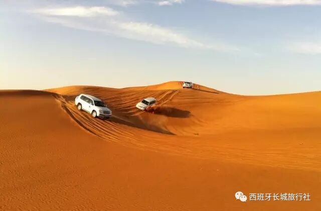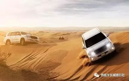 冲沙公司安排乘坐陆地巡洋舰进入沙漠,享受异域冲沙并欣赏沙漠日落之后沙漠营地,体会阿拉伯帐幕生活,享用地道的阿拉伯风味烧烤晚餐,观赏特具中东异域风情的肚皮舞表演(斋月期间暂停)