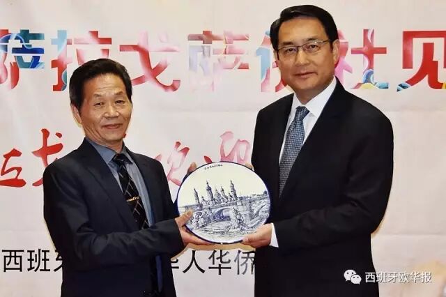 为了感谢吕凡大使和中国驻西使馆对阿拉贡大区侨胞的关怀,留迪光会长将一份代表侨界心意的纪念品赠予吕凡大使。