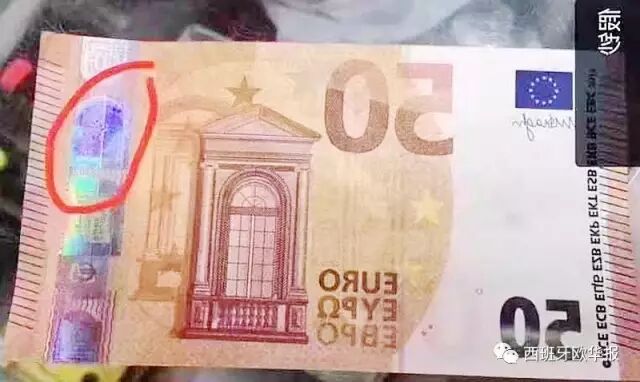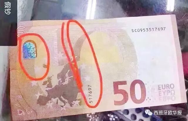 欧华报瓦伦西亚消息(记者 名将)本周,记者陆续接到举报电话,反映说在瓦伦西亚市内经营的店铺最近两三天发生多起用假钞购物的事件,主要使用的是目前最新版50欧元纸钞,据说仿真度极高。作案当事人是两个外国男子,有时一人作案,另一人在门口把风,有时候两个人一起出现。这两个人经常选择中午或下午客人比较多的时候作案,目前主要针对的目标是中国人经营的百元店,但也有其他商店。大部分店家都有在各自的朋友圈发出消息,也希望本报能迅速报道,以免更多人受骗。