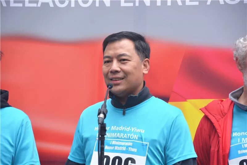 最后,领事参赞朱健发表了简短但热情洋溢的讲话。他说道,不论是从义乌来的朋友,还是西班牙华人或者是西班牙友人,看到大家相聚在这里一起奔跑,他很开心。他希望大家都能努力奔跑,一路前行,永不停歇!