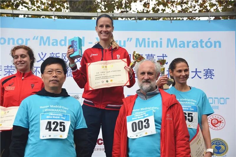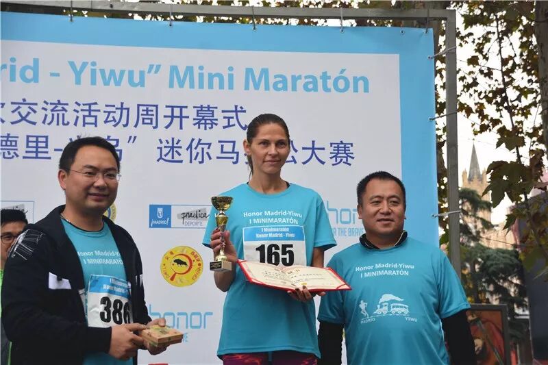 义乌人大付春明副主任与Luis Cueto为女子第一名颁奖并赠送荣耀X8一部