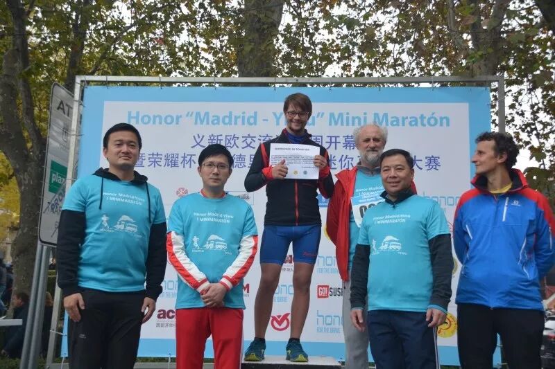 揭牌仪式后, “荣耀杯”马德里迷你马拉松大赛鸣枪开跑,从普拉多大道出发,经阿托查火车站至西维斯广场(全程5公里)。这是西班牙华人历史上首次组织这项活动。尽管比赛时飘着细雨,但并未影响选手们的参赛热情。