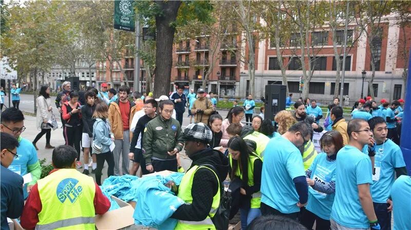 早上8点左右,虽然天刚刚亮,但比赛现场已聚集了大批华人以及当地西班牙人,他们正排队等待领取参赛号牌和运动T恤。在这些参赛队员中,有的是一家几口前来参赛,有的是侨胞组团前来助阵。另外,还有西班牙本地人的跑群团体也一齐参与,这无疑是给此次活动锦上添花。