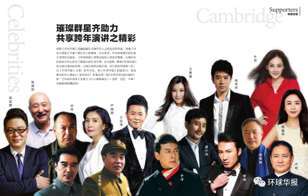 此次活动受到了海内外各界人士的大力支持,联合主办方、联合支持方及个人支持、媒体联盟支持的总数高达140余家。不仅如此,2019年的跨年演讲还得到了众多明星的隔空视频祝贺!