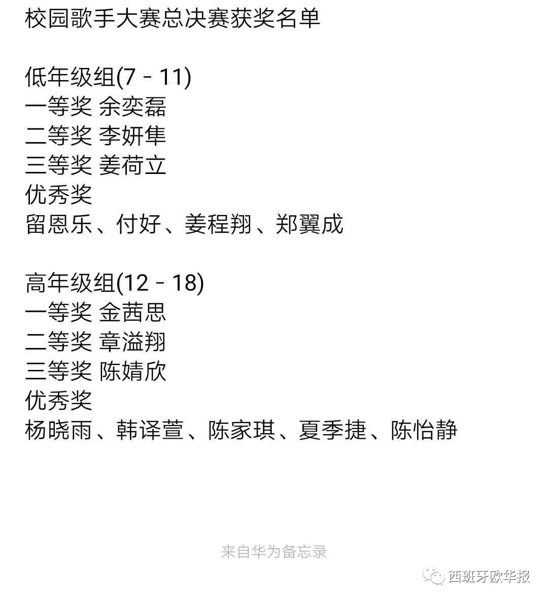 进入总决赛的有低年级和高年级组的十五名参赛同学。评委有旅西华裔青年歌唱家胡茜老师和曾获欧洲华人歌唱大赛西班牙赛区冠军的李金福先生以及三位华文媒体代表组成。旅西侨界和学生家长一百余人参加了活动。