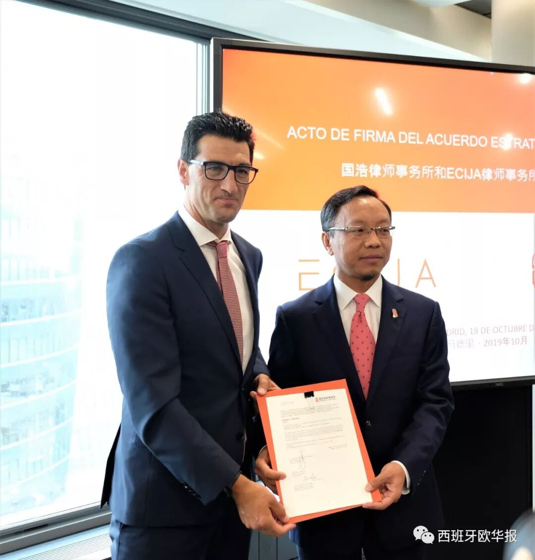 欧华报消息(记者 青峰)10月18日早10点半,中国国浩律师事务所与西班牙ECIJA律师事务所战略合作签署仪式在位于西班牙马德里四塔商业区的水晶之塔(Torre de Cristal)隆重举行。