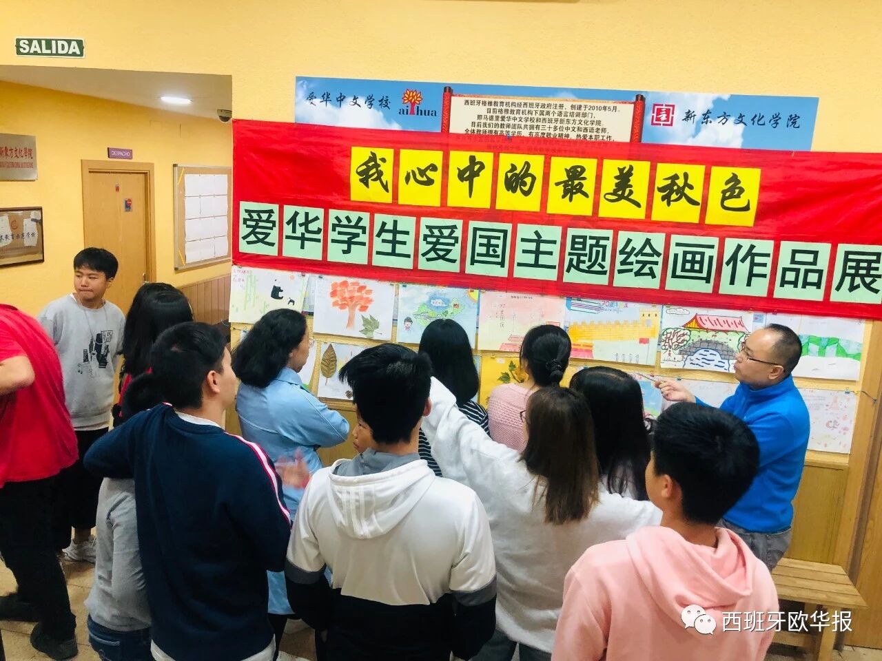 今年十月正逢我们新中国七十周年华诞,是极有纪念意义的一个秋天,所以今年的活动还增加了一个爱国主题。本次活动配合大使馆发起的“你好中国”画展,学校从暑假前就开始发动和准备,之后,陆陆续续收集了一百二十多幅关于国庆和秋天的主题绘画作品。