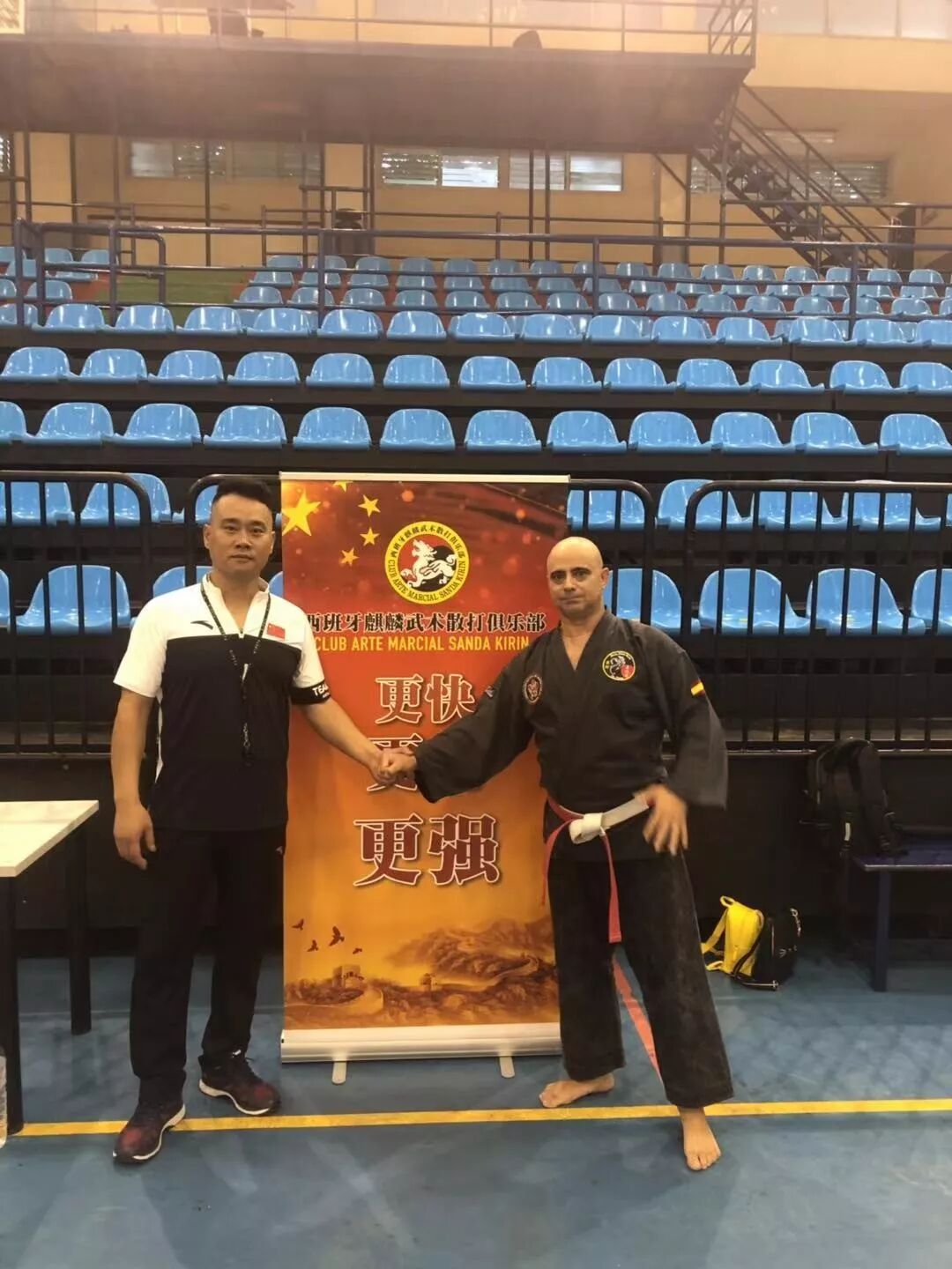 欧华报消息:2019年10月27日,西班牙加那利群岛武道联盟组织会长Giuseppe Corbo先生,亲临特内里费市政府体育馆,看望慰问了西班牙麒麟武术散打俱乐部,与俱乐部武术散打总教练张华彬先生进行了有关中国武术在西班牙本土交流发展的深入会谈。