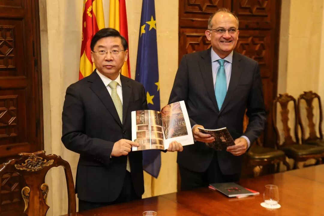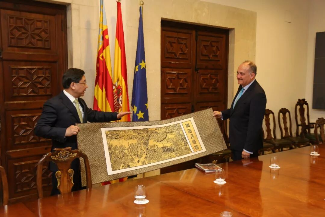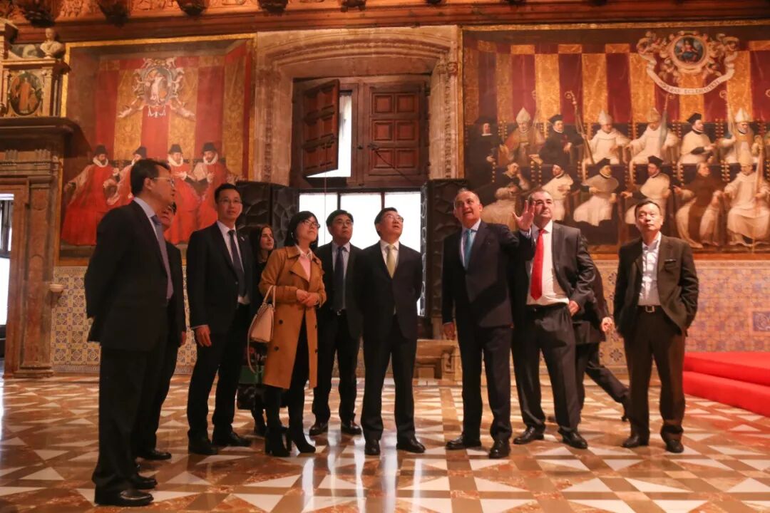 双方交换了礼物后,在Joan Calabuig 部长的带领下参观了瓦伦西亚大区(1286年建成的瓦伦西亚王国议会大厅)等。