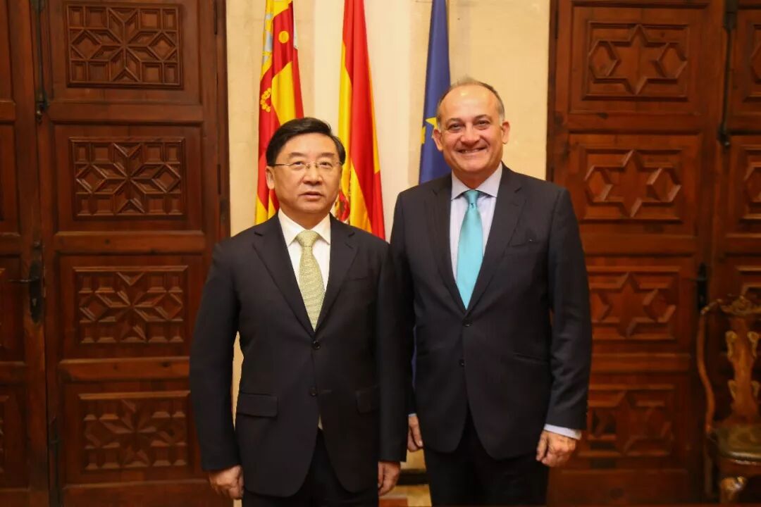 2019年11月21日11:30 中共福建省委书记、福建省人大常委会主任于伟国一行,通过西班牙福建华人华侨总商会会长陈信召,应瓦伦西亚大区政府主席Ximo Puig的邀请,前往瓦伦西亚大区政府。瓦伦西亚大区经济部长兼欧盟事务对外办公厅秘书长Joan Calabuig 代表大区主席,在瓦伦西亚大区主席办公会议室,会见中共福建省委书记、福建省人大常委会主任于伟国,省委办公厅林钟乐主任,吴子东副秘书长,省商务厅吴南翔厅长省外办主任王天明,省发改委主任张灿民,西班牙福建华人华侨总商会会长陈信召,西班牙福建慈善基金会会长陈恩官等。
