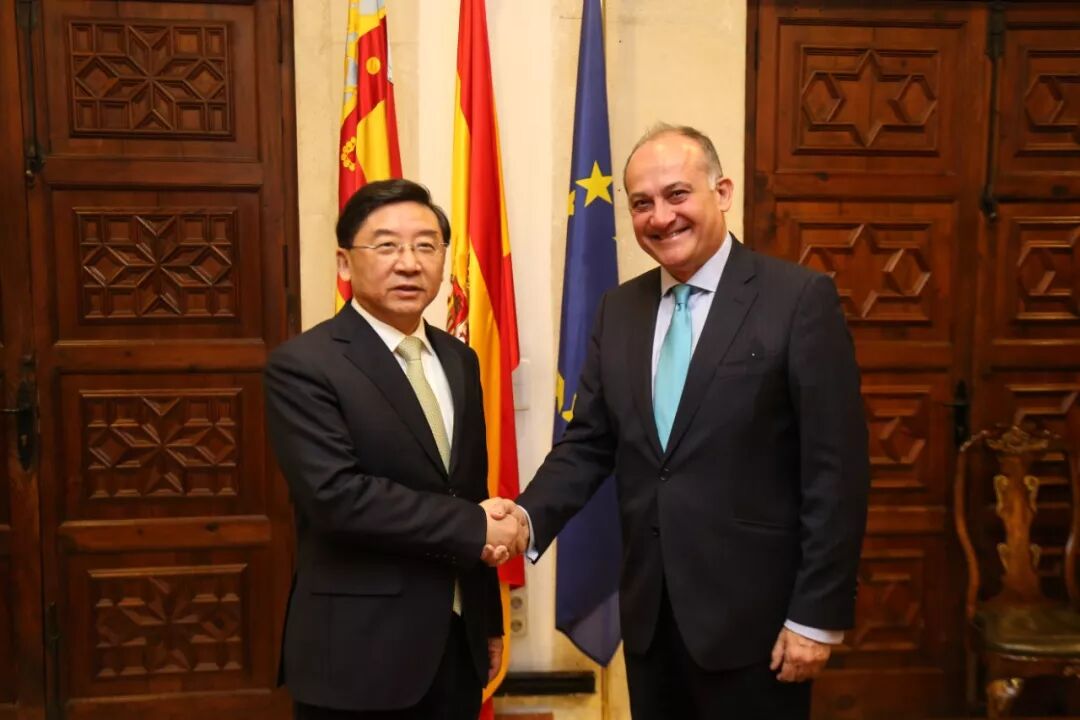 首先Joan Calabuig代表大区主席向于伟国书记一行表示热烈欢迎,双方在数据化经济、贸易、投资、旅游、文化等领域交换了意见,并取得了共识。于伟国书记指出:我们福建省政府代表团带着诚意来瓦伦西亚大区,愿意与瓦伦西亚大区建立友好省,推动双方在数据化经济、贸易、投资、旅游、文化等领域加强合作。于伟国书记表示,只要中国政府部门推动的事,所有企业家和民众都会义无反顾的支持和参与。并邀请大区政府派团到福建来访问,加强和落实此次访问的共识。