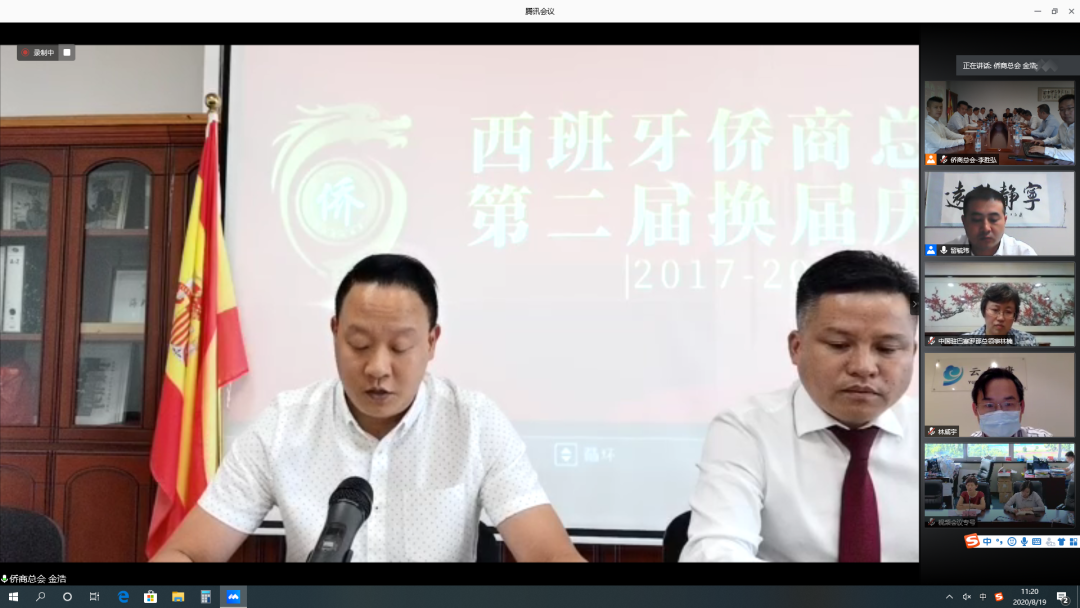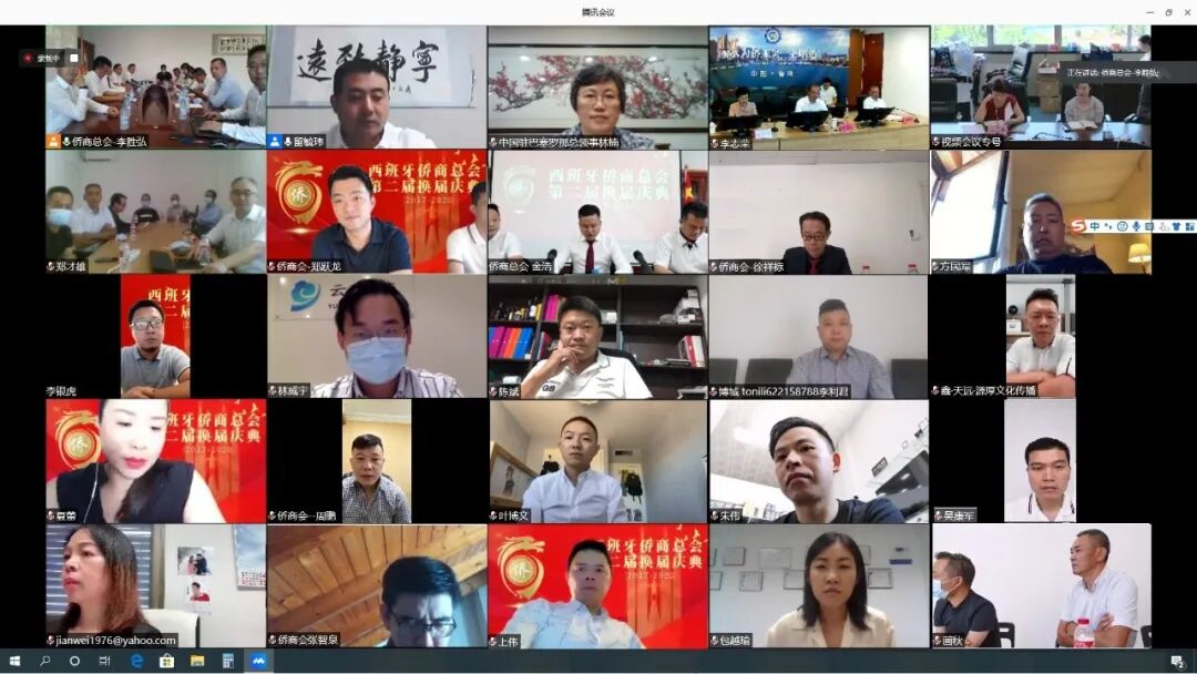 8月19日上午10:30(北京时间下午16:30)西班牙侨商总会第二届换届大会以“云会议”方式举行,驻巴塞罗那总领馆林楠总领事、浙江省侨联张维仁副主席、丽水市侨联傅旭蓉副主席、中共青田县统战部邹浙清部长、青田县侨联叶毅青主席等侨务部门领导在线上出席了会议,现场以及在线有130余位西班牙侨商总会成员参加了会议,大会由留毓玮秘书长主持。