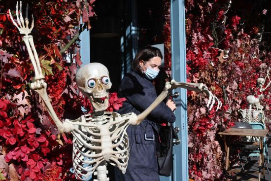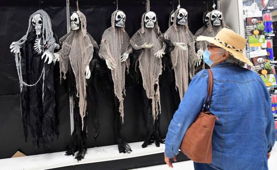 加利福尼亚州阿罕布拉,一位顾客在购买万圣节产品。FREDERIC J. BROWN/AFP