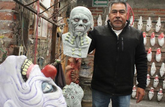 Rafael Domínguez在墨西哥普埃布拉州展示亡灵节面具。MIGUEL VICTORIA/EFE