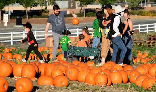 美国加利福尼亚州波莫纳,人们在选择用来雕刻的南瓜。FREDERIC J. BROWN/AFP