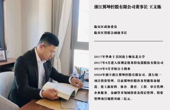 2020年,王文栋创立了浙江翼坤控股有限公司,主要是做项目投资和投后管理,涉及教育、体育、工程、企业服务、金融等多领域。勤奋踏实较真的他,带领了一批志同道合的青年奋力前行。