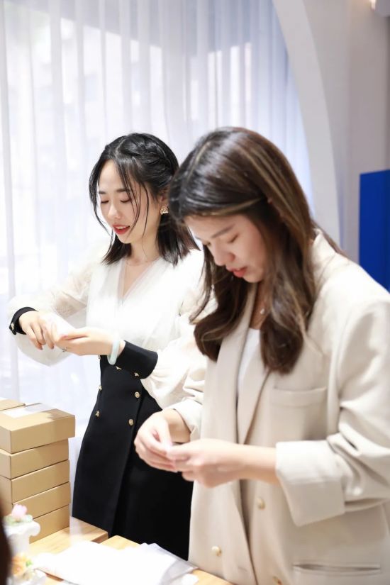 袁冰婵为记者介绍了她工作室的另一位珠宝设计师皓真,皓真来自宝岛台湾,两人相识于英国,是留学期间相同专业的同学,她们个性互补,对珠宝都有着同样的热爱和执着。在临安这方热土上,她们一起将创新材料与天然宝石相结合,潜心创作出独一无二的作品。她们还设计提供亲子、情侣、团建课程,让客户体验到手作人的快乐和生活的仪式感。她们的脸上洋溢着自信恬静的笑容,她们对未来充满了信心。