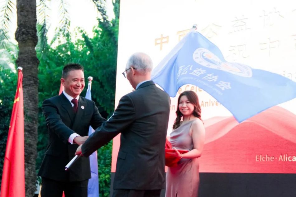接下来,Elche市长Pablo Ruz先生将中西公益协会的会章授予中西公益协会首任会长裘建胜先生,表达了Alicante市政府对协会成立的认可和美好的祝愿。