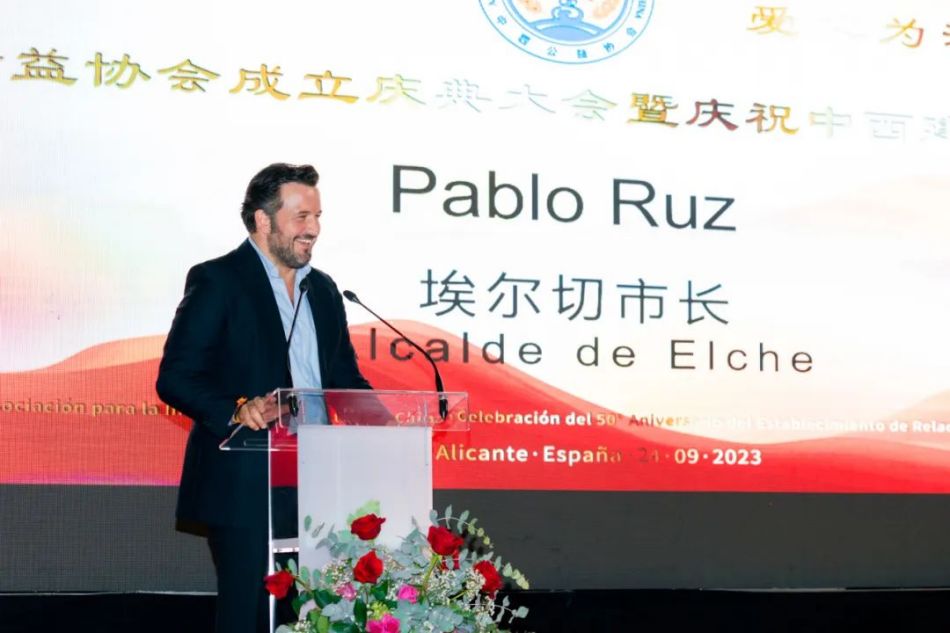 Elche市长Pablo Ruz先生随后致辞。首先,他代表市政府对协会的成立表达了祝贺。他表示,对于Elche来说,中国侨民不是外国人,而是他们的兄弟、他们的姊妹。并表示希望加强中西交流与联系,中国侨民能与当地人民互相合作、友好发展。