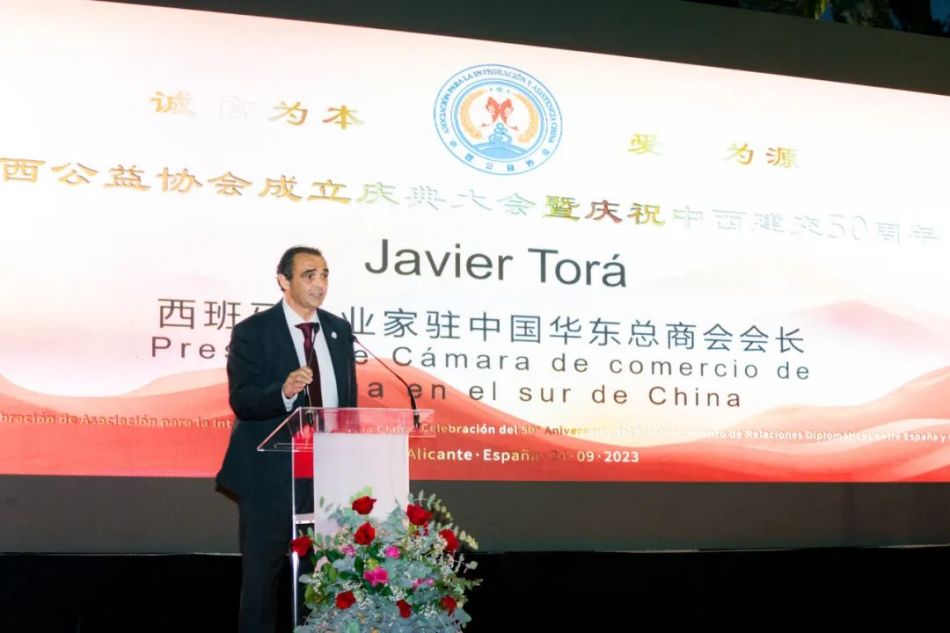 随后,中西公益协会法律顾问José Miguel Lledo先生发表讲话。他表示,非常高兴能通过本次成立庆典大会了解到中国群体和中国人勤劳奋斗的精神。他也非常希望能通过本次大会,加深中西两国的交流和互助。