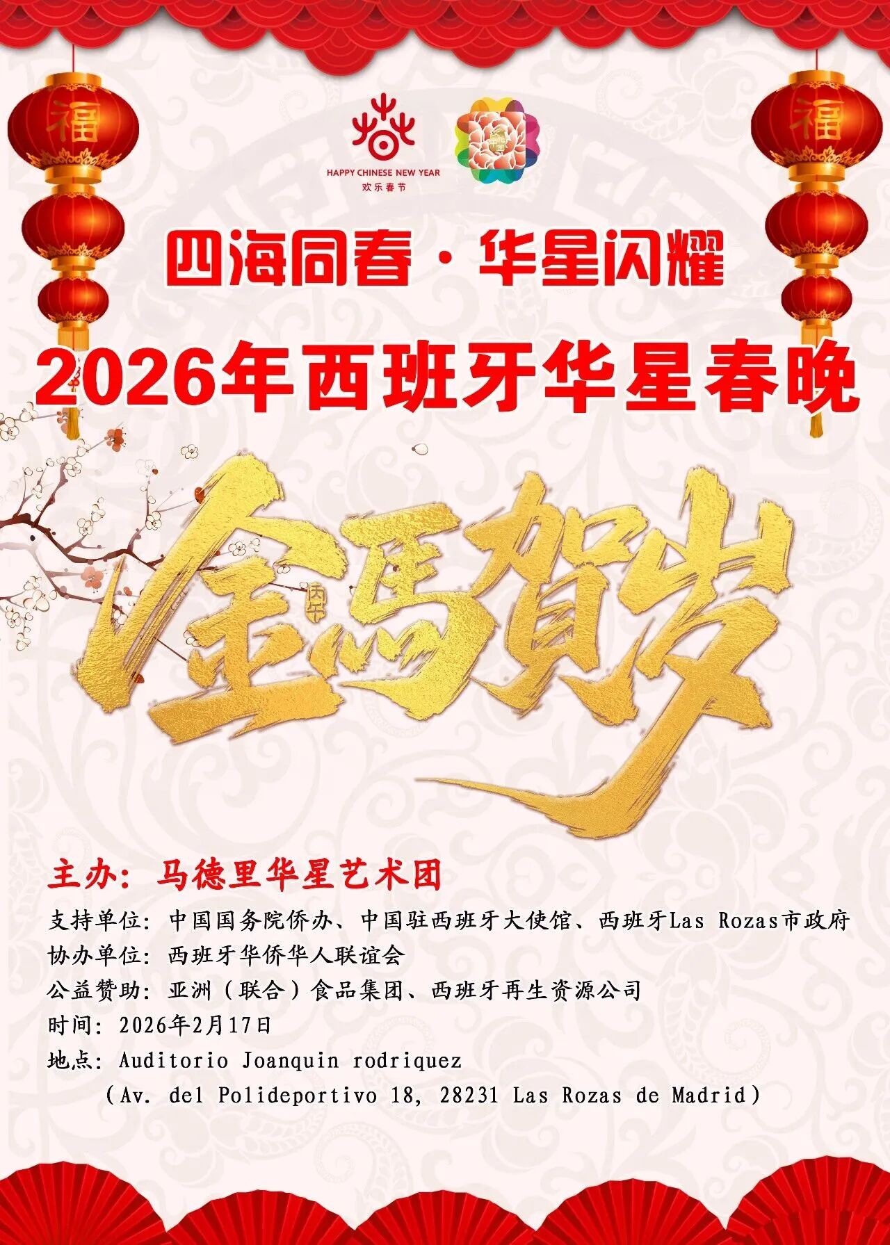 欧华报综合消息:新岁将临,春意渐浓。2026年2月17日17:30,第八届西班牙华星春节晚会——“四海同春·华星闪耀”将在拉斯...
