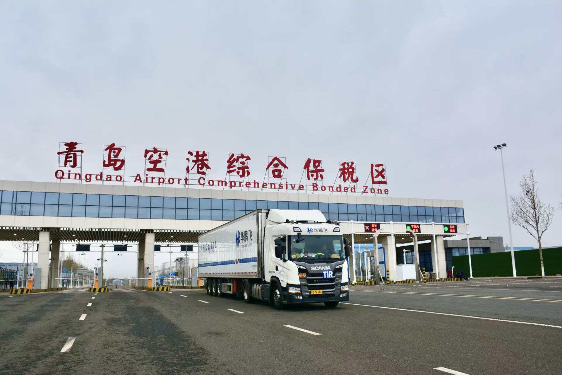 9月4日,一辆悬挂有TIR(国际公路运输公约)标识牌的运输车辆抵达青岛大港海关监管作业场。这辆TIR车上装载的是青岛沃...